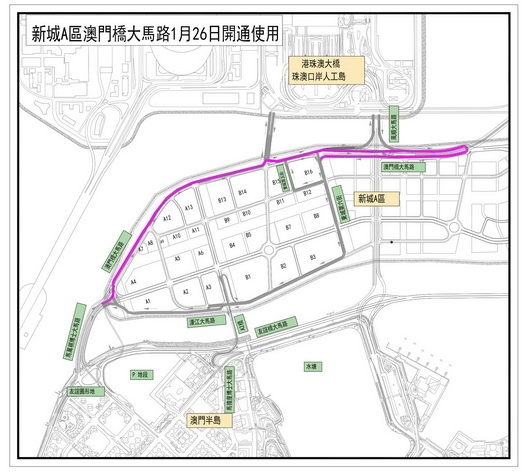 【本報消息】新城A區東側的澳門橋大馬路部分行車線將於1月26日開通,屆時由澳門半島進入港珠澳大橋口岸及澳門大橋的車輛需使用新建的澳門橋大馬路,行車動線會比現時更加便捷,而鏡海大馬路將於同日起臨時封閉只予進入地盤及特許車輛行駛,請駕駛者留意現場交通指示及改道後的行車路線。公共建設局日前聯同交通事務局組織交通諮詢委員會委員及社團代表,前往A區和人工島視察澳門橋大馬路的建設進度和該路啟用後之行車動線,...