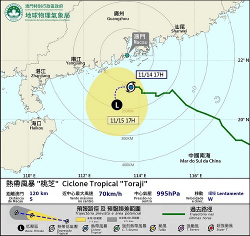【本報消息】為本澳帶來本周第二個三號風球的熱帶風暴「桃芝」,於周四清晨在本澳以南約150公里掠過,移動便開始變得較為緩慢,並於日間大部分時間在本澳150公里範圍內,相關烈風區也持續影響珠江口,氣象局一直需要懸挂三號風球。受「桃芝」移動路徑靠近珠江口,氣象局於周三晚上七時發出三號風球。及後鄰埠香港也於周三晚上11時10分發出八號風球,再於周四早上10時20分改發三號風球,本澳氣...