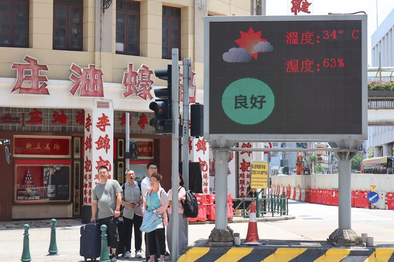 【本報消息】受強颱風「格美」外圍下沉氣流影響,本澳周四天氣非常酷熱,各區最高氣溫普遍有攝氏35度,外港碼頭更高達36.3度;「格美」襲台後周四晚上已於福建沿岸登陸並逐漸減弱,但氣象局預料周五最高氣溫仍然可達33度,已發出黃色高溫提示,預測天氣多雲短暫時間有陽光,有幾陣驟雨及稍後有雷暴,風勢較大,周末至下周初受低壓槽影響,持續有驟雨及雷暴,可望稍微降溫,預測最高氣溫將下降至2...