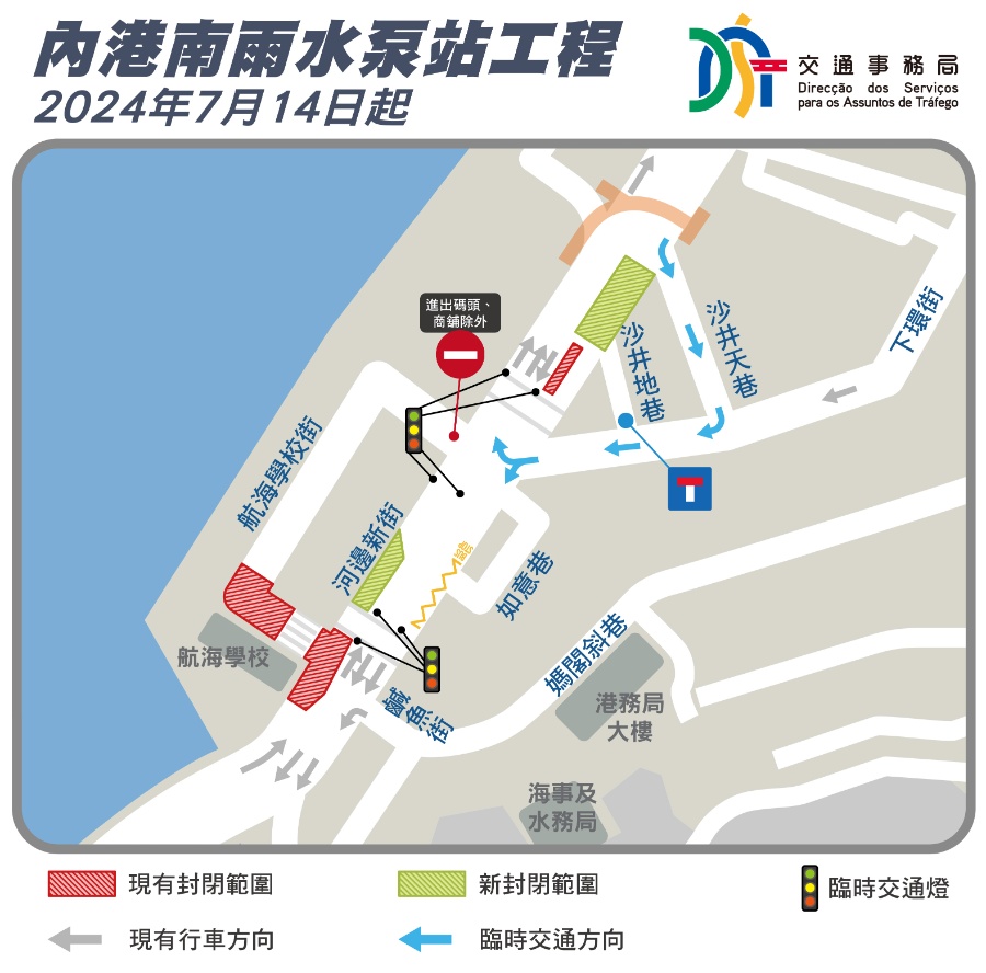 【本報消息】配合內港南雨水泵站及下水道工程的推進,於7月14日起,下環街近河邊新街的路段將恢復通車,航海學校則維持封閉交通,而河邊新街實施有限度通車的路段則有所調整。內港南雨水泵站及下水道工程是特區政府重大防災工程之一,且具相當迫切性。公共建設局及交通事務局將繼續密切留意各項臨時措施的實施情況,著力做好協調工作,減少工程對交通和周邊居民的影響,並已指示承建商增設指示牌以指引行人。兩局呼籲公眾提前...
