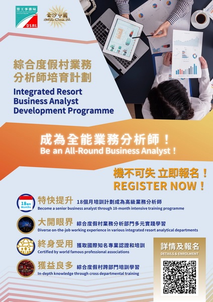 【本報消息】為進一步培育本澳大數據人才,並提供職涯發展階梯,勞工事務局和金沙中國合作推出「綜合度假村業務分析師培育計劃」,以「先入職、後培訓」方式,協助具條件和有意從事綜合度假村業務分析工作的澳門居民就業,計劃由7月4日起接受申請。計劃提供業務分析師職缺20個,獲錄取參加計劃者,將接受一系列培訓,內容包括多元化分析部門實踐學習、綜合度假村跨部門學習、由高管指導完成公司業務分析項目及分享等。在完成...