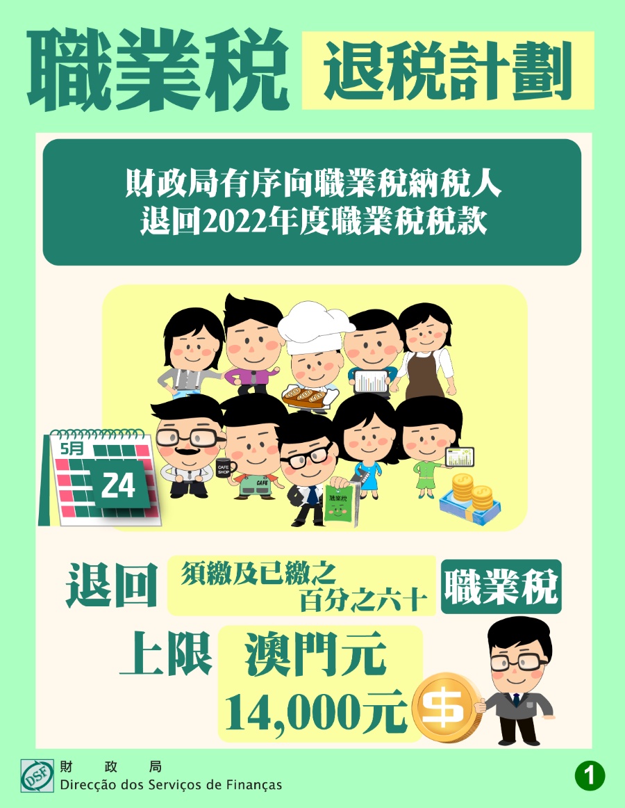 【本報消息】財政局將於5月24日以銀行轉帳或郵寄劃線支票方式向2022年12月31日持有澳門居民身份證的職業稅納稅人發放退稅款項,將有15.8萬名納稅人獲得退稅。根據第22/2023號法律《2024年財政年度預算案》第20條的規定,向2022年12月31日持有澳門居民身份證的職業稅納稅人,退回2022年度須繳並已繳納的職業稅稅款百分之六十,上限為澳門元14,000元。財政局以銀行轉帳或郵寄劃線支票...