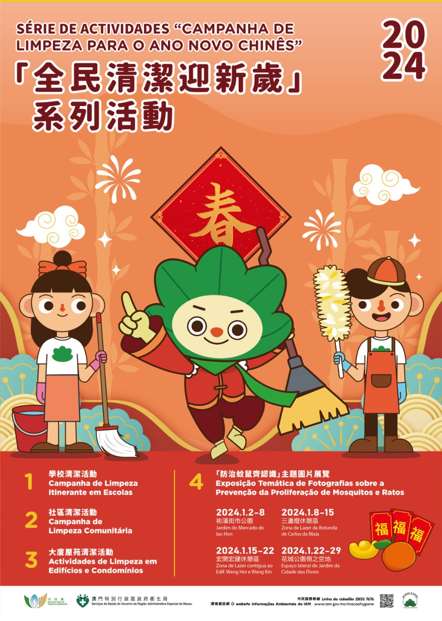 【本報消息】為加強市民對家居、校園和社區衛生的關注,市政署於一至三月期間聯同衛生局及多個團體,舉辦2024年「全民清潔迎新歲」系列活動,在傳揚「新春送舊迎新」習俗的同時,透過組織學校師生及團體義工於校內及澳門各區進行清潔活動,喚起全民對環境衛生的重視。活動內容豐富多元,其中「防治蚊鼠齊認識」主題圖片展覽於一月期間在四個地點巡迴展出,包括二日至八日於祐漢街市公園、八日至15日於三盞燈休憩區、15日...