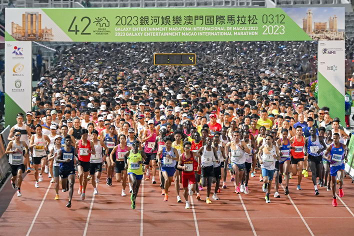 踏入第42屆的澳門國際馬拉松,今屆賽事在賽道設計規劃上加入了新元素,馬拉松、半程馬拉松以及迷你馬拉松的路線均途經「澳門銀河」綜合度假城及金光大道,而馬拉松路線繼續途經嘉樂庇總督大橋及西灣大橋,全長42.195公里。賽事於上午六時展開,並由體育局局長潘永權、銀娛副主席呂耀東、澳門田徑總會副理事長陳步倩、銀娛董事程裕昇主持鳴槍起跑儀式。