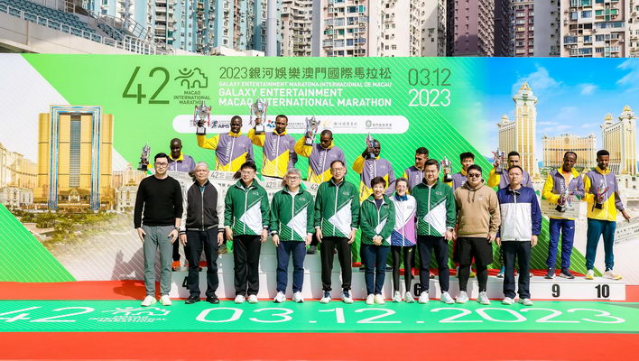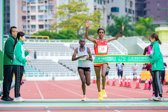 【本報消息】由體育局、銀河娛樂集團及澳門田徑總會主辦的「2023銀河娛樂澳門國際馬拉松」周日清晨於奧林匹克體育中心運動場舉行,其中馬拉松男、女子全場組別最終分別由埃塞俄比亞選手狄比尼及安比奪冠,而王坤與趙彤彤則分別贏得馬拉松澳門運動員男、女子組的桂冠。