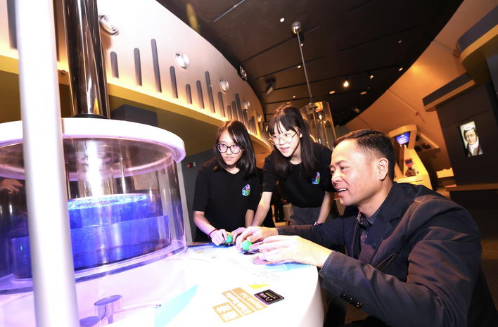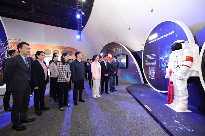 代表團先後參觀了天文館、北斗衛星系統科普國際實驗室、數據科學廳、中國科學家精神展廳、《逐夢蒼穹 探索深海—中國航天航海科技薈澳》科普展覽等。館長邵漢彬和澳門青年科技村學員向代表團介紹北斗衛星系統科普國際實驗室北斗套件設施、數據科學廳及進行虛擬社交互動體驗等。