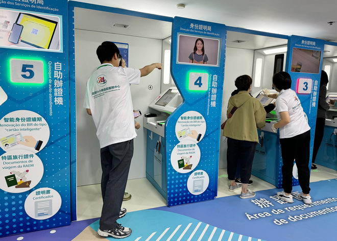 政府24小時自助服務中心分別位於南灣中華廣場、黑沙環政府綜合服務大樓、士多鳥拜斯大馬路(二龍喉公園附近)、筷子基社屋快達樓、離島政府綜合服務中心、氹仔湖畔大廈,以及石排灣社區綜合大樓等七個地點,供市民自助辦理多項身份證明文件及自助領證。