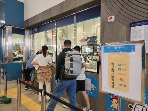 【本報消息】輕軌氹仔線上周五正式延伸至媽閣站,首個周末假期連日來吸引大批居民和旅客乘坐嘗鮮,親身體驗輕軌過海,不過不少居民抵達後才發現輕軌閘機不單不支援使用移動支付,就連購票機也只支援硬幣和紙幣,需要到人工窗口購票;與媽閣站同步開放的天台花園也吸引了不少居民參觀,居民都讚現場景觀甚好,認為媽閣站應盡快加入餐飲元素,為居民增加一個休閒好去處。