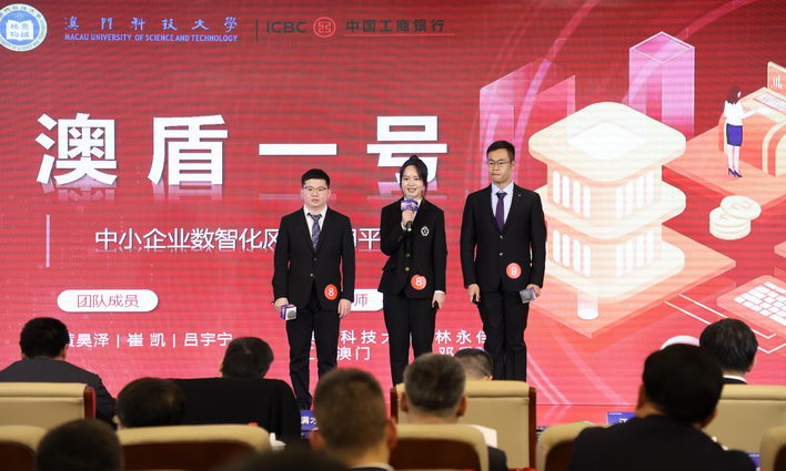 本屆「澳門大學生金融科技創新大賽」於11月28日在本澳成功舉辦決賽,來自澳門科技大學的黃昊澤、呂宇寧及崔凱選手的作品《「澳盾一號」澳門中小企業數智化風控信用平台》脫穎而出,成功斬獲澳門賽區一等獎,此後由工銀澳門推薦參加「2023『工行杯』全國大學生金融科技創新大賽」總決賽。