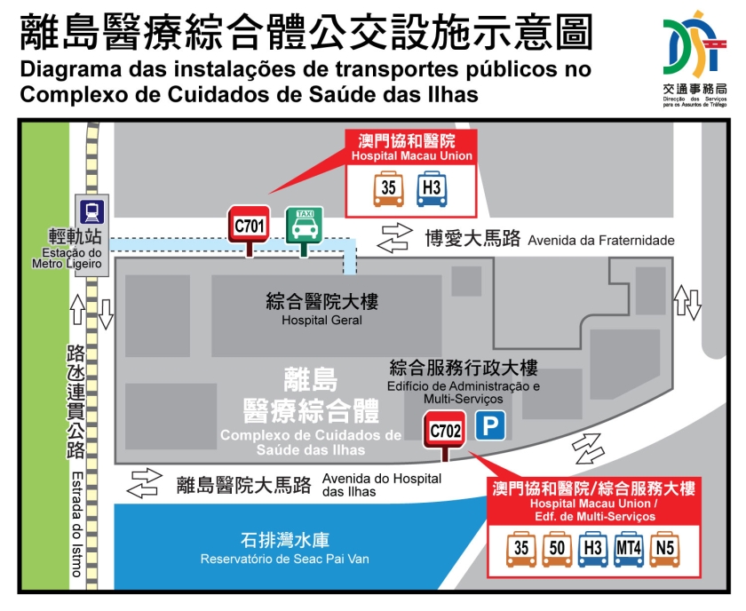 當中,為配合澳門協和醫院啟用,自12月16日起,啟用分別位於醫院北面靠近綜合醫院大樓的澳門協和醫院巴士站,以及位於醫院南面靠近綜合服務行政大樓的澳門協和醫院/綜合服務大樓巴士站,並調整35、50、H3、MT4以及N5的路線行程以及停靠站點,延伸服務範圍至澳門協和醫院,方便市民往來。