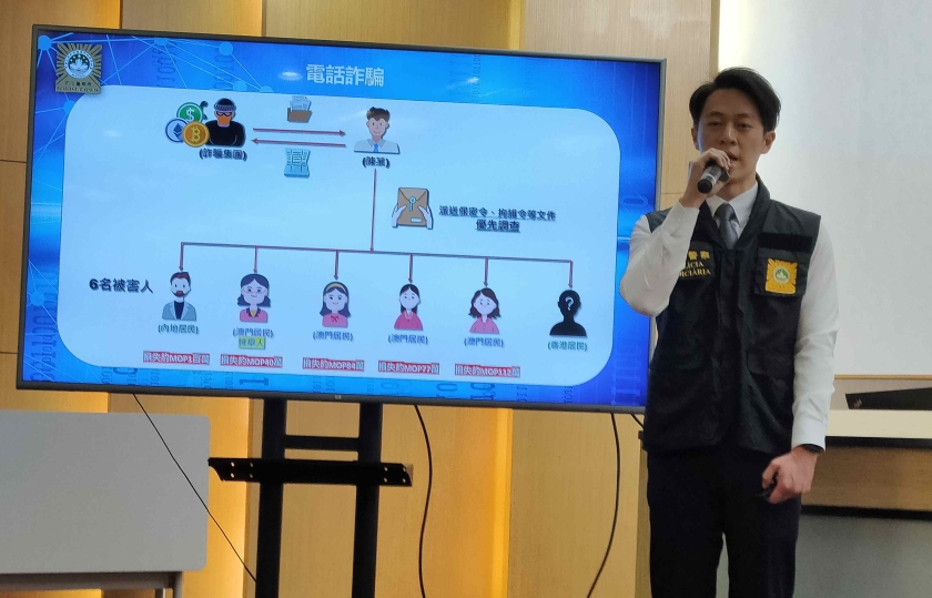 司警於本月12日接獲一名本澳女事主報案,報稱懷疑自己墮入公檢法騙局,其於月初接獲假冒內地公安的騙徒來電,對方指其實名登記的手機涉及重大詐騙案,事主向對方透露個人資料後於翌日在住所信箱收到所謂拘捕令和保密令等文件,深信不疑下配合調查並在視頻查案和共享屏幕時向騙徒提供銀行戶口和密碼。不久女事主發現自己銀行戶口存入88萬元,這筆款項連同其存放戶口內的40萬元及後迅即被人全部轉走,事主懷疑上當決定報司警求助。