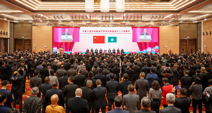 行政長官在致辭時表示,澳門回歸祖國24年來,與祖國齊奮鬥、同發展、共繁榮,命運始終緊密相連,譜寫了具有澳門特色“一國兩制”成功實踐的華彩篇章。實踐證明,偉大祖國永遠是澳門戰勝一切風險挑戰、保持長治久安的堅強後盾。