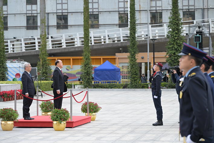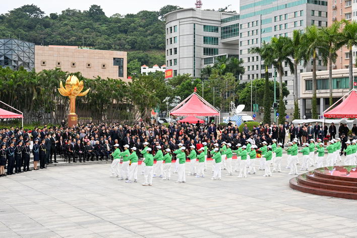 行政長官、中央駐澳官員、解放軍駐澳部隊軍官、特區立法和司法機關負責人、政府主要官員及各界人士等約520名嘉賓出席了上午8時在金蓮花廣場舉行的慶祝澳門特區成立24周年升旗儀式。