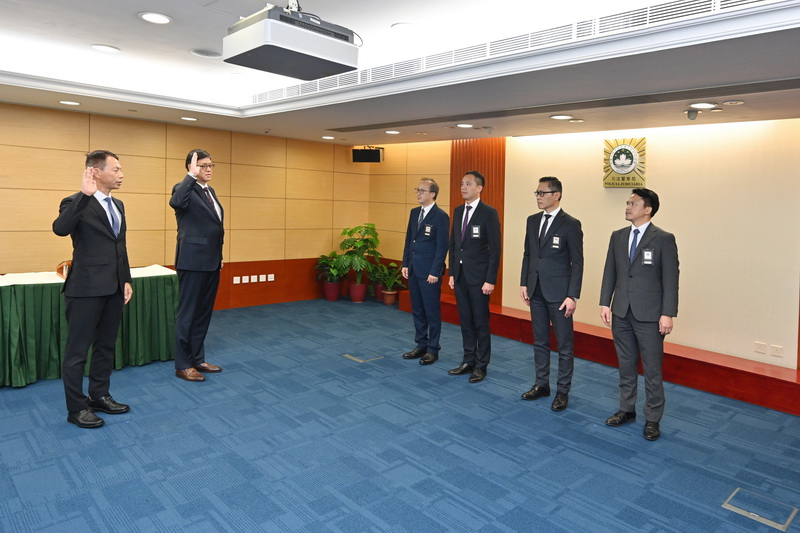 【本報消息】司法警察局舉行督察長就職儀式,在薛仲明局長監誓,並在賴文威、蘇兆強及岑錦榮三位副局長,以及各部門主管的見證下,一等督察余光輝和黃炳貴於宣誓就任督察長。