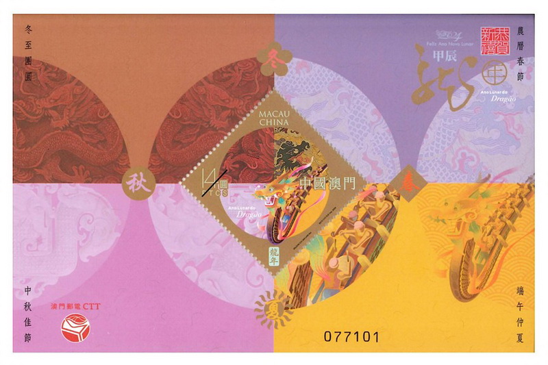 是次發行並有載有一套四枚郵票、一枚小型張、連郵票首日封及連小型張首日封各一個的郵摺,每冊120澳門元;以春天為主題的「龍年」陶瓷蓋碗及郵摺一冊的郵票蓋碗禮合368元。