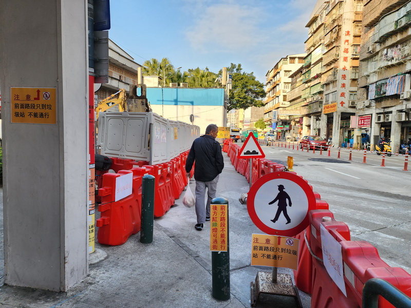 【本報消息】隨著內港南雨水泵站及下水道工程的推進,媽閣往返十六浦之間的道路不時有新的交通措施,早前介乎李道巷與南舢舨碼頭之間一段比厘喇馬忌士街已封閉交通至八月初;該區遍地開花的掘路工程不單令行車路況更加複雜,就連行人也受到影響,比厘喇馬忌士街封閉交通後附近一條斑馬線暫停使用,雖然現場已提前張貼提示,但仍不時有行人誤入而要折返,改經其他行人橫道過馬路,甚為不便。