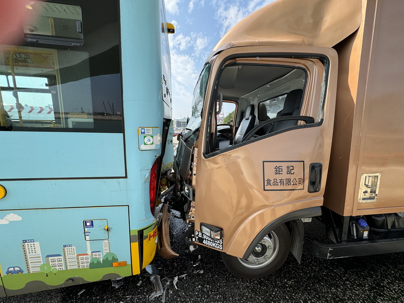 三車連環相撞交通意外發生在周日中午約12時許,警方接報後抵達友誼大橋澳門往氹仔方向的意外位置時,發現該宗連環撞車交通意外共有一輛貨車、一輛巴士和一輛旅遊巴涉事,但就沒有人被困。
