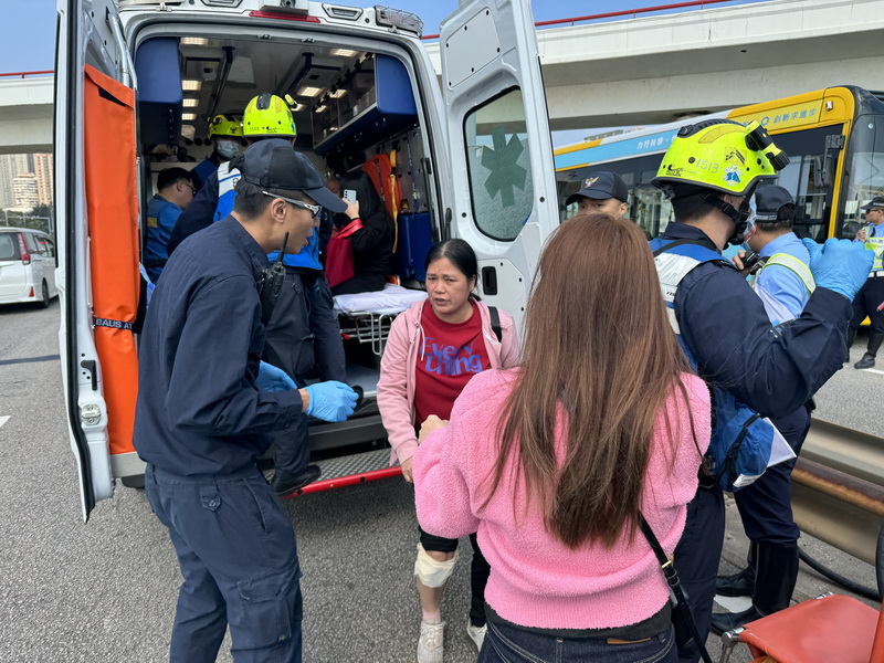 【本報消息】友誼大橋澳門往氹仔方向周日中午,發生一宗涉及巴士、旅遊巴與貨車的三車相撞交通意外,意外中共有11名男女受傷,當中包括涉事貨車司機及10名巴士上乘客,幸好眾人均僅受輕傷,情況穩定,旅遊巴上則沒有傷者。傷者們已分別送往本澳兩間醫院,當局現正進一步調查肇事原因。