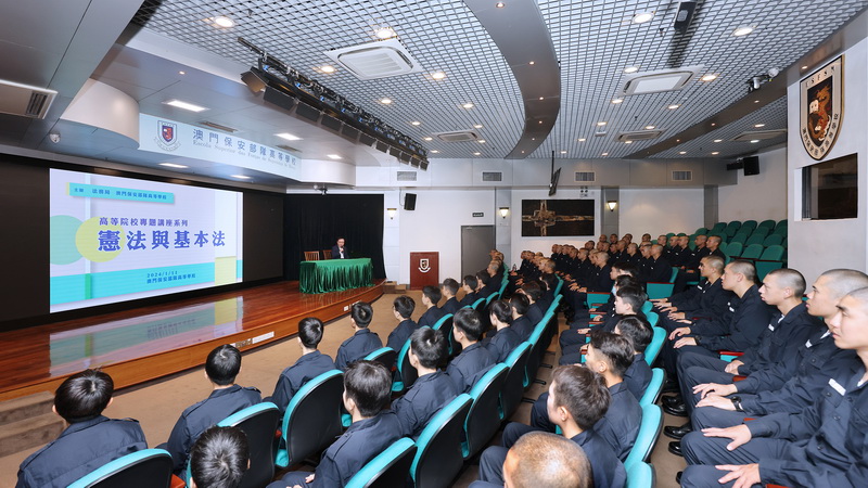 【本報消息】法務局與澳門保安部隊高等學校於1月11日合辦本年首場「高等院校《憲法》與《基本法》專題系列活動」,邀請了澳門大學憲法與基本法研究中心主任蔣朝陽教授擔任主講,共89名澳門海關保安學員參與。