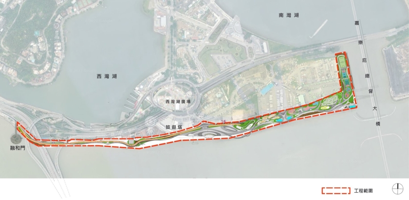 現時舊澳氹大橋以西的土地用作停泊巴士和旅遊巴,何萬謙表示,已就項目與交通局溝通,該局需要對停泊區的泊位重新規劃,騰出部分位置;規劃地段上現時設有自由波地,他表示擬先在靠近大橋一側開展工程,建造球場等設施,方案亦已就防洪防災等諮詢規劃部門,未來或會適當升高海岸堤圍。