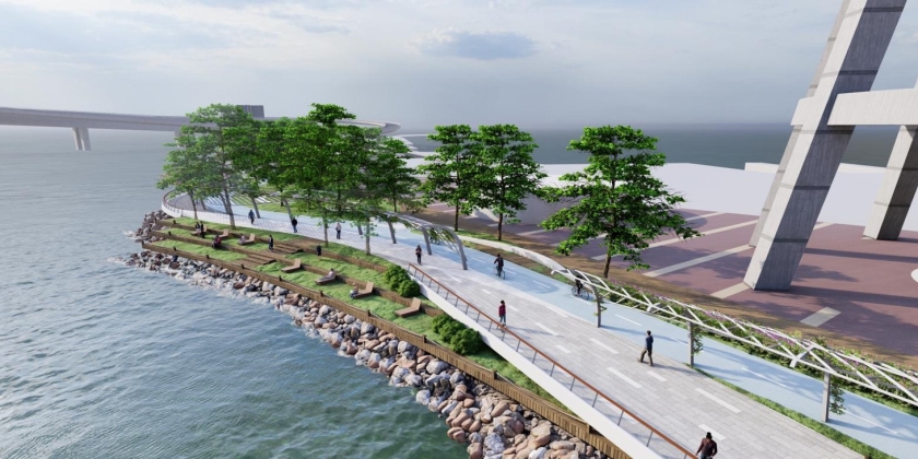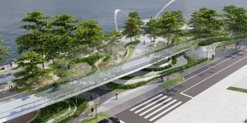 市政署周三向傳媒介紹澳門半島南岸海濱綠廊第二期設計方案,整體設計概念遵從澳門城市總體規劃在景觀方面的指引性原則,佈局劃分不同功能分區,以無障礙海濱休閒步道及單車徑貫穿全區主要動線,海濱休閒步道闊至少五米,單車徑長約1,300米,來回線各寬四米,一圈總長約2,600米。為最大化使用休憩區用地,單車徑部分以架高設計,同時可提供更多遮陽空間。