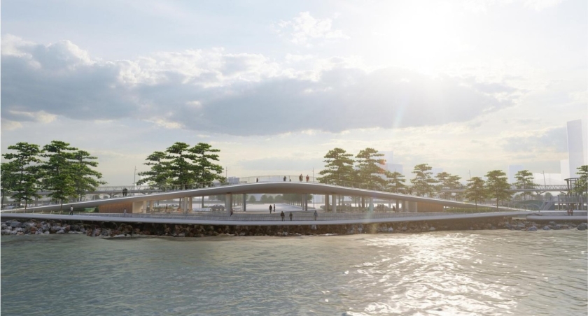 設計方案建議利用休憩區沿海特點,設置不同的觀水空間,包括中央廣場及眺望台,上層平台可連接單車橋;下層為多用途空間、商業空間及戶外親水平台。區域東端設置餐飲空間及眺望平台,並會於合適沿岸位置設釣魚區。與此同時,綠廊內將設有輕食餐飲空間、小賣亭及自動販賣機、戶外用餐桌椅以及公廁等配套設施,分佈於區內合適地點。