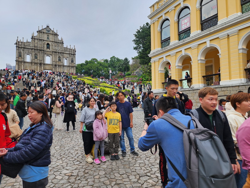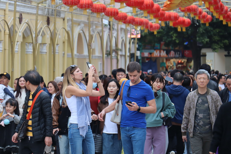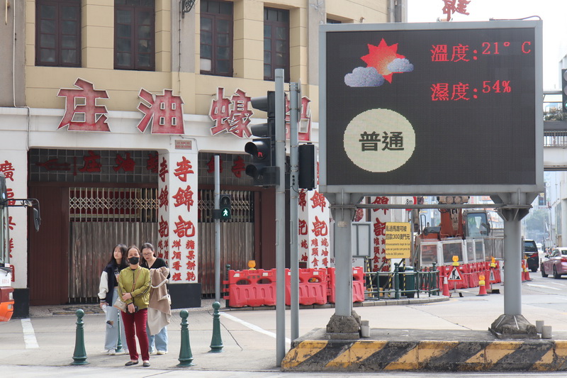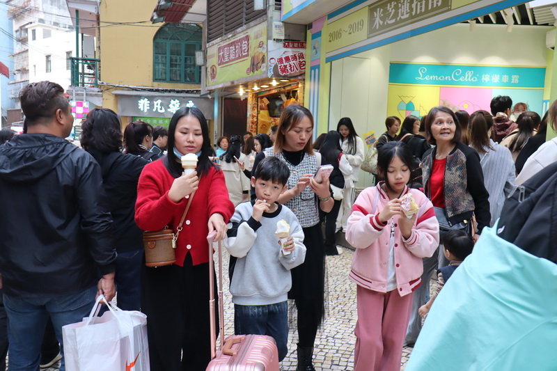 經過上周六最高氣溫達26度的「大寒」節氣後,周日本澳逐漸受到強烈冬季季風影響,清晨各區氣溫下降至只有約13度至14度,但隨著太陽升起,日間各區氣溫普遍回升至20度至21度,日夜溫差甚大的天氣也無阻旅客遊澳,午間議事亭至大三巴一帶旅客絡繹不絕,沿途有穿上大衣的旅客,也見有脫下厚外套的旅客在品嚐凍冰冰的雪糕,甚至有部份遊客僅穿短袖衫,仿如置身於春夏季節。