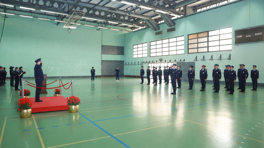 【本報消息】治安警察局周二上午在特警隊大樓舉行警長及副警長晉升儀式,儀式由局長吳錦華主持,副局長黃偉鴻、梁慶康、伍素萍及各部門主管出席儀式。儀式上,各位晉升的警長和副警長正式戴上新的肩章,標誌著晉升人員肩負起更多的職責。