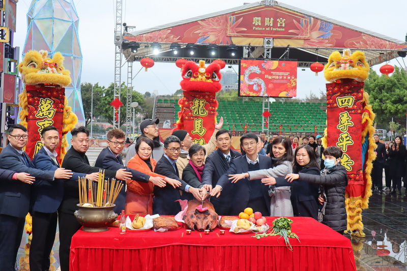 旅遊局賀歲重頭戲花車匯演將於農曆年初三(2月12日)及年初八(2月17日)分別在中區及北區上演,主辦的旅遊局、協辦單位、支持單位、贊助單位及部分表演隊伍的代表周四出席活動的拜神儀式。