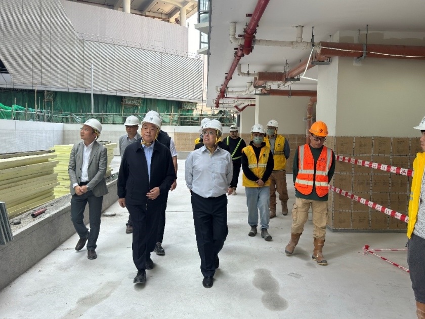 【本報消息】行政長官賀一誠年初五(14日)上午前往即將於本年內落成的新城A區B4、B9及B10地段和慕拉士大馬路四個公共房屋建築工地巡視,瞭解各項目的最新工程進度,並為新年期間留守工地工作的工程人員作出鼓勵,陪同巡視的還有運輸工務司司長羅立文、房屋局局長任利凌、公共建設局局長林煒浩等。