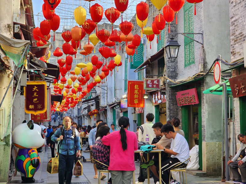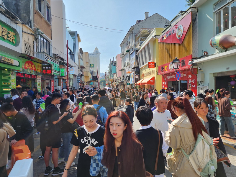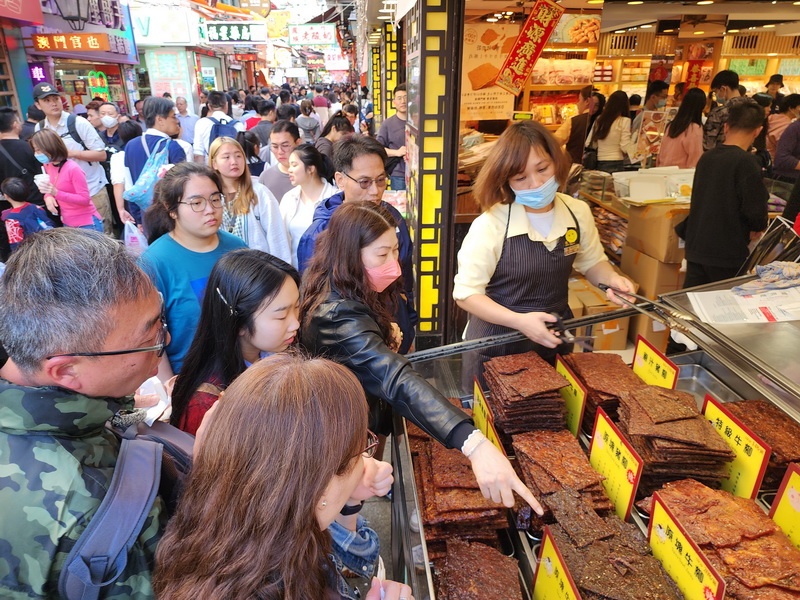 今年春節市面熱旺情況基本恢復至疫前,旅遊區內的手信店和小食店的店員做到無停手,但有手信店指旅客的消費意欲仍未恢復至疫前,加上人民幣匯率偏軟,而新一代「窮遊」觀念日漸增加,光顧的旅客大多只是適量購買,幸好今個春節人流多,生意一定會較疫情期間好得多,但始終無法與疫前媲美。