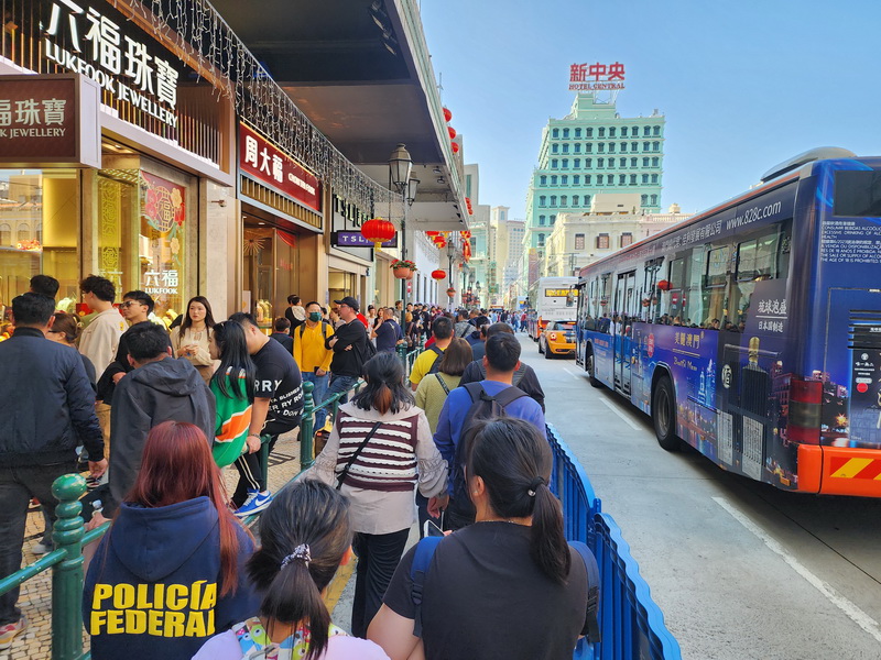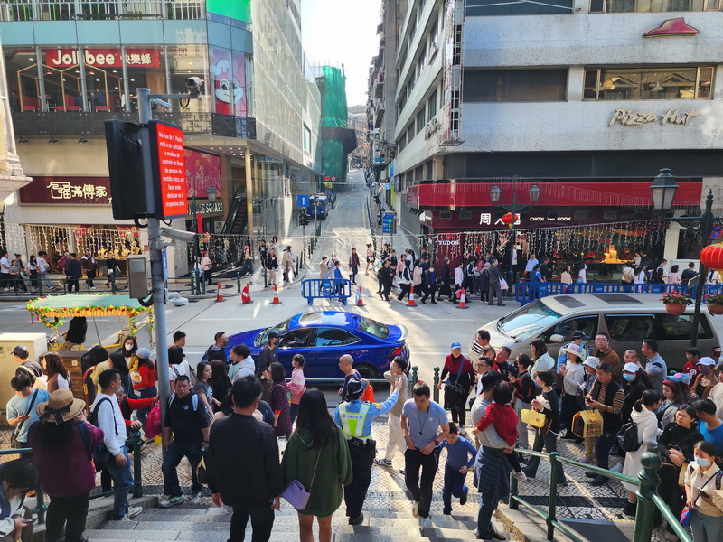 與此同時,本澳多個旅遊景點亦擠滿了大量的旅客,警方過去一連五日要在大三巴街實施人潮管制措施,行人只可單向上行前往牌坊,並取道周邊的大關斜巷、關前後街和高園街等離開;同樣有大批旅客行經的新馬路方面,警方則由年初三旅客入境高峰當日起,因應新馬路部份路段人流擠擁,一連三日在下午時段封閉新馬路由龍嵩正街至市政署部份車道作為臨時行人通道,以便疏導人流,該措施實施期間,行經新馬路的車輛不可左轉入龍嵩正街。
