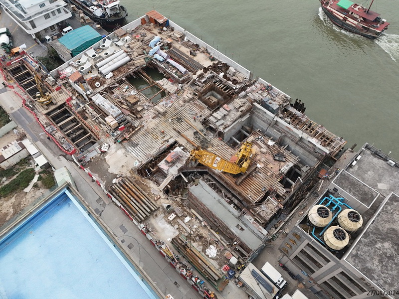 根據公共建設局網站的工程資訊顯示,2022年11月最早在比厘喇馬忌士街5號B碼頭地段動工的第一期工程,將在該處建造雨水泵站及預留污水處理設施的結構平台,預計竣工日為今年七月。