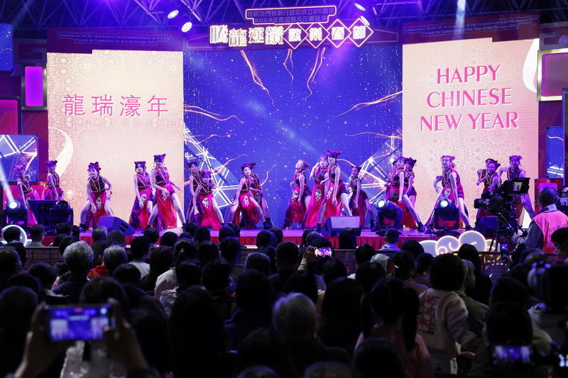 在祐漢街市公園舉行的精彩文藝表演,由美高梅、永利澳門、銀河娛樂、澳娛綜合、金沙中國、新濠博亞及長隆集團呈獻,以及有來自香港的藝人李施嬅及關嘉敏,聯同澳門歌手古淖文、龍世傑及羅凱瑩等表演嘉賓帶來連串精彩的演出,與居民和旅客一同迎接花車抵達,沿途人流暢旺,現場氣氛熱烈。