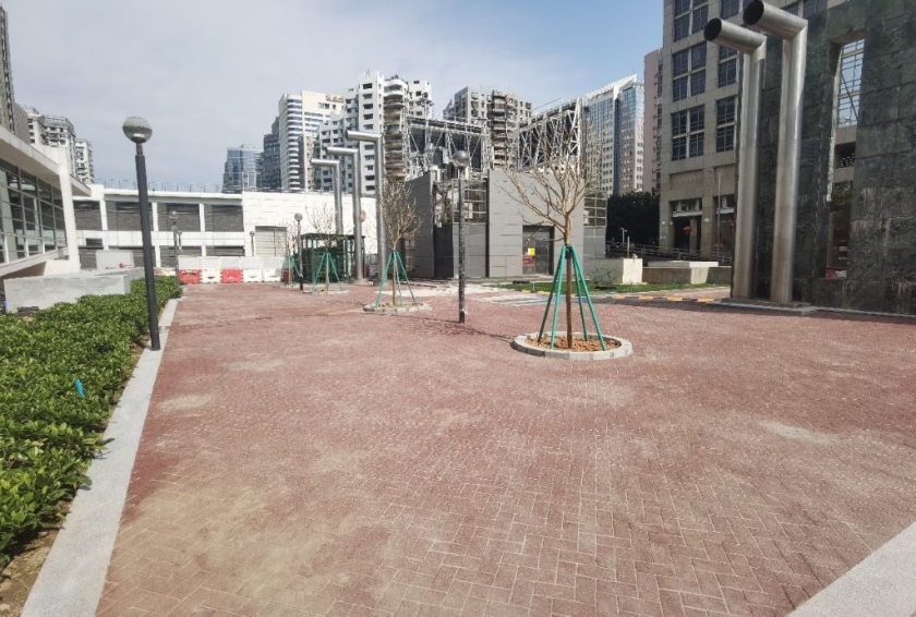 因早前臨時佔用廣場及雨水涵箱以建造盾構機始發井的復完工作正處於收尾,當修復完成後,隨即開放使用。