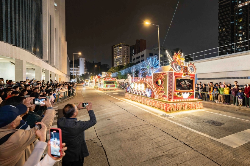 「慶祝澳門特別行政區成立25周年 2024年農曆新年花車匯演 騰龍運鑽歡樂春節」分別在中區和北區兩場活動已圓滿舉行,兩場花車匯演現場累計共吸引近7.9萬人次觀看。位於塔石廣場的花車展覽亦已於25日晚上10時結束,展覽期間吸引居民及旅客近距離觀賞,與造型出眾的花車拍照留念。