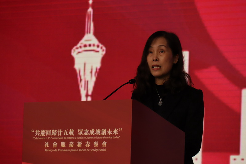 社工局周二舉行「共慶回歸廿五載 眾志成城創未來」社會服務新春餐會,與約600名社會服務機構人員聚首一堂,歡慶新春;歐陽瑜致辭時表示,回歸25年來,特區政府一直把改善民生、關顧弱勢社群作為施政重點,並持續推行多重措施,讓本澳的社會服務事業得到長足發展。其中對社服機構的資助金額,由回歸初期一億多元,增加至去年逾16億元,增幅為15倍;各類社會服務的受惠人次,亦由回歸初期每年八萬多人次,增至去年逾520萬人次,增幅達64倍。