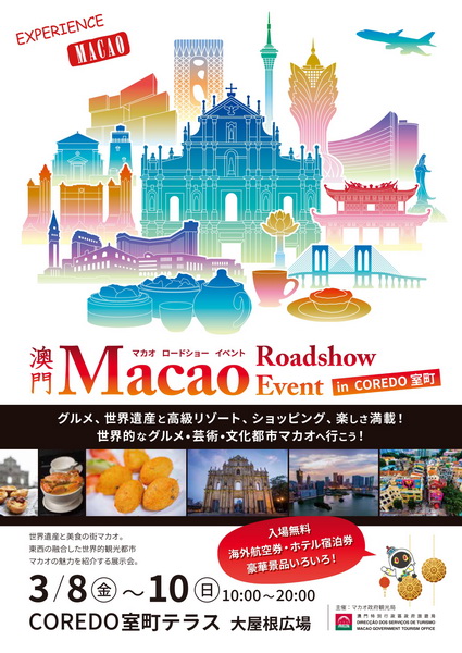 【本報消息】旅遊局今年首個大型海外路展活動周五起一連三日在日本東京舉行,地點選址在鄰近東京站的高密度商業區COREDO室町Terrace大屋根廣場舉行,一公里範圍約有50萬人工作,也是當局自去年全面通關以來在日本舉辦的第一個路展活動。航空公司及澳門六家綜合度假休閒企業亦在現場設置展位,推廣旗下旅遊設施及嶄新元素,聯動推出各類優惠旅遊產品,共同擴展客源。