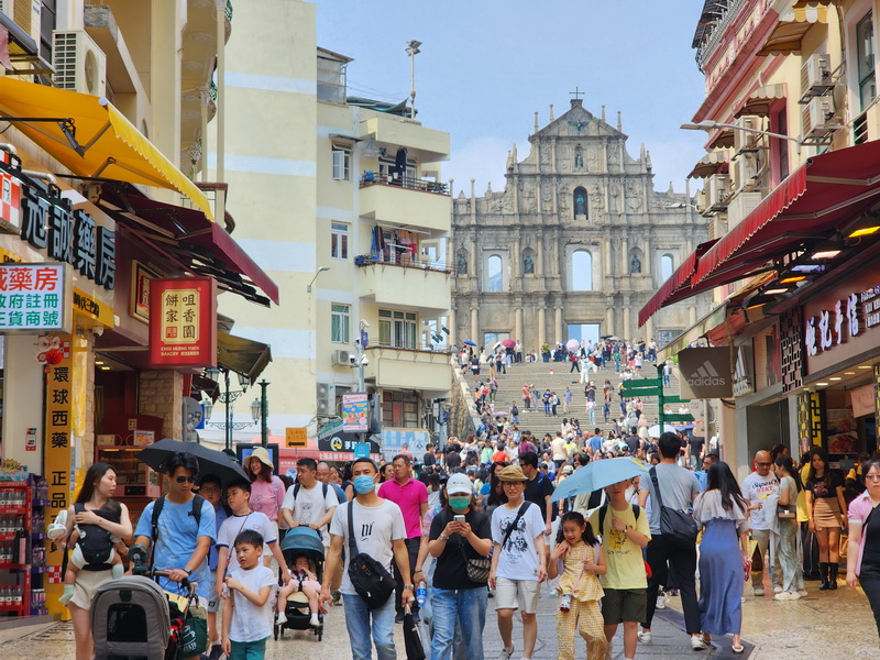 復活節假期首三日入境旅客均突破10萬人次,令中區和氹仔旅遊區人流較平日周末假期略有增多,周一在香港旅客及外地旅客加持之下,旅遊區的人流仍然較多,甚至與周末假期差不多,尤其是下午時段。
