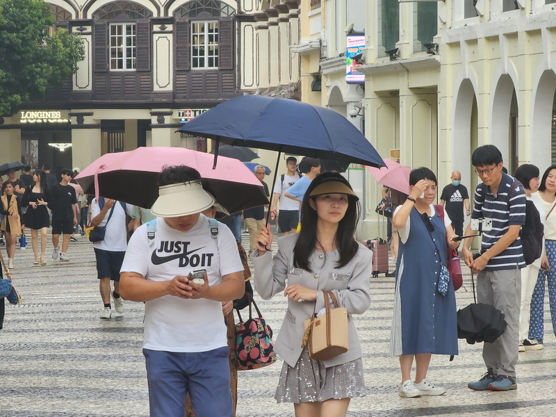 中區牛雜小食店員指,早前留意到天氣預報指剛過去的周末假期會有雷暴,天氣不穩定,幸好本澳最終沒有如廣東省其他地方一樣受到強對流天氣影響,不過由於天氣有些悶熱,旅客較多選擇到室內有冷氣的地方覓食,附近銷售凍飲和雪糕的人流明顯較多,不時有排隊情況,牛雜店的生意只屬一般。