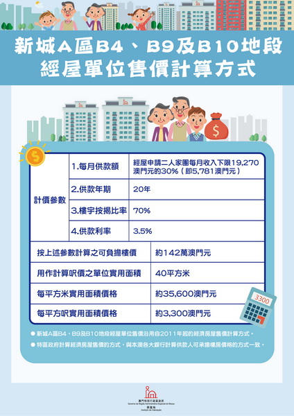 當局指在訂定售價時,其中一個須考慮因素是「能成為此類房屋的受惠人的購買力」,該因素是按經濟房屋二人家團收入下限作為受惠人的購買力考慮。具體計算方式是以現時經濟房屋申請二人家團的每月收入下限19,270元的30%作為每月供款負擔,按供款期20年、供款利率3.5%,以及貸款額為樓價七成,計算出可負擔之樓價為1,423,991元。再以購入一個實用面積為40平方米之單位,換算出每平方呎實用面積呎價約3,300元。根據此基準呎價,每個單位的具體售價將視乎單位座向、樓層、位置、面積和類型而上、下調整。