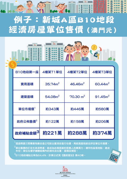 【本報消息】《特區政府公報》刊登第57/2024號行政長官批示,公佈涉及2019年經濟房屋申請的新城A區三個地段,即B4、B9及B10地段的經屋單位售價及補貼比率。三個地段合共提供3,017個單位,將於今年內落成。
