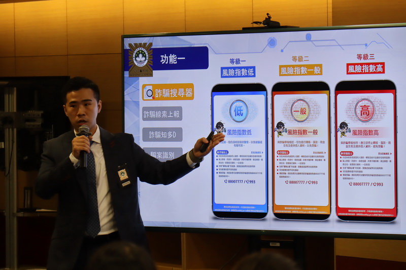 司警表示,「反詐程式」目前儲存約17萬筆詐騙相關數據,呼籲市民多利用舉報功能,協助司警與騙徒「鬥快」,及時更新相關詐騙電話或網站的資料,保持資料的「新鮮度」。