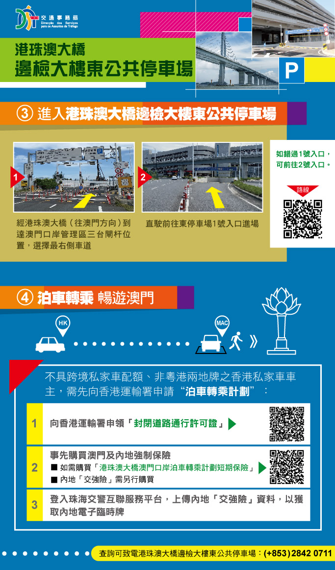 有關東停車場的使用安排詳情,可瀏覽交通局網站及微信公眾號(服務號macaudsat及訂閱號macau-dsat)。
