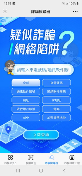 【本報消息】為協助居民提升電信詐騙的識別能力,司警月初在官方微信公眾號上推出「反詐程式」,司警表示,「反詐程式」推出至今已有兩個星期,「詐騙搜尋器」功能平均每星期使用1,700次,比對資料後為「高風險」的超過有180次,「詐騙線索上報」每星期使用約60次,居民主要上報收到的釣魚網站連結和公檢法來電號碼,警方並再次呼籲居民如遇到懷疑來電可使用「反詐程式」搜尋功能,並將懷疑詐騙的資料上報當局。