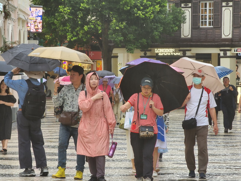 午後本澳部份地區仍間中出現零散小雨,但下午四時後一直籠罩著本澳上空的雲團變薄甚至露出少許藍天,市民可以稍微感受到久違的陽光,至傍晚時份全澳各個氣象監測站累計總雨量只介乎1.8毫米至2.4毫米之間。不過,氣象局下午更新天氣預報時,仍然預料本澳會受一道低壓槽帶來不穩定氣流影響,周五至周六驟雨增多及有雷暴,間中雨勢較大及有強烈陣風,並可能造成水浸。