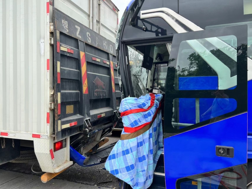 涉事的旅遊巴及貨車車頭嚴重損毀,擋風玻璃碎裂,零件及碎片散落一地;被撞的泥頭車車尾亦損毀,治安警在場調查並拍照存檔。事發後,現場及友誼大橋交通一度嚴重擠塞。