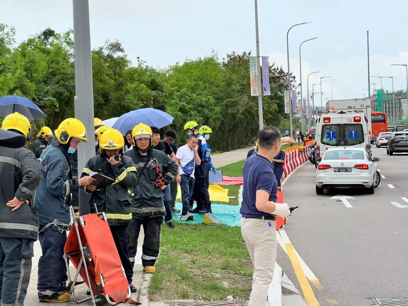 治安警及消防接報到場處理,消防立即救出被困的發財巴司機,同時啟動分流程序處理傷者並出動救護車及救護巴士,同時將傷者分送往鏡湖醫院和山頂醫院治理。