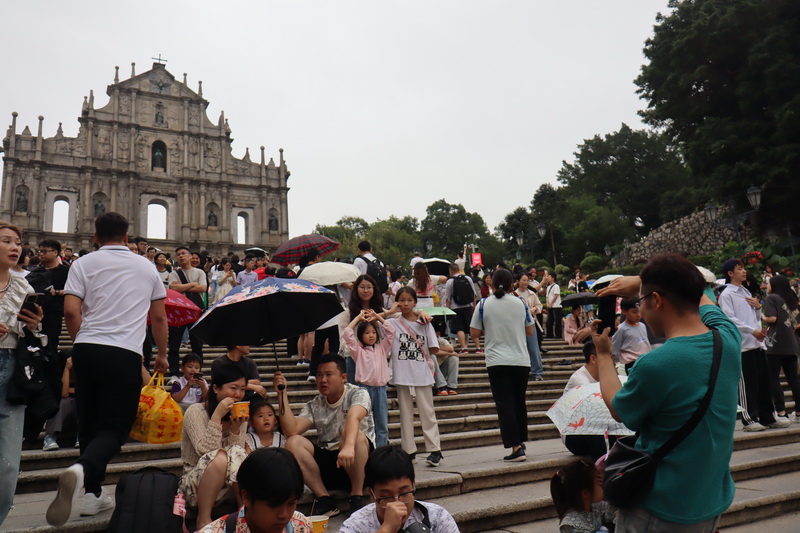 警方繼五一假期首日下午在大三巴街實施人潮管制後,周四因應大三巴街在中午時段已出現人多擠擁,提前在中午12時20分實施人潮管制,行人只可單向上行往牌坊,並要取道周邊的大關斜巷、關前後街、高園街等街巷離開,下午二時許更因應現場人流增多,需要一度在女媧廟位置實施分倉分流措施,潮水式放行行人上行,下午本澳需要一度落起微雨,但仍然無阻旅客到大三巴觀光,大三巴街的人潮管制至晚上七時才取消。