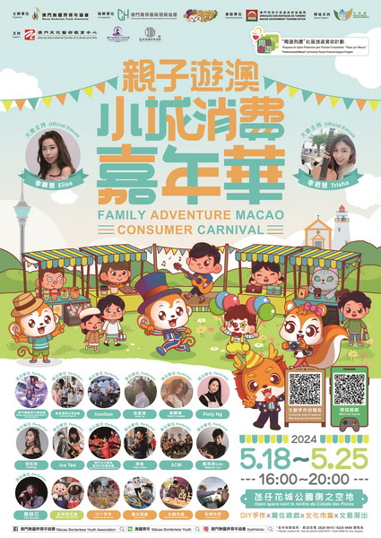 「親子遊澳小城消費嘉年華」則將於5月18日至25日在氹仔花城公園側之空地舉行,帶來澳門特色文創產品巿集、創意手作坊、文藝演出及街頭快閃互動等,並聯動逾60家本地商戶於活動期間提供不同優惠,吸引旅客和居民到該區消費。